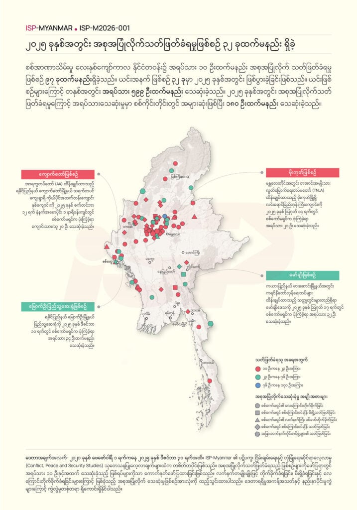 ယခုမြေပုံသည် ISP-Myanmar က ထုတ်ဝေထားသော မြန်မာ့အခြေပြစစ်တမ်း (State of Myanmar) – ISP-Myanmar ၏ မဟာဗျူဟာဆန်းစစ်ချက်နှင့် ဦးတည်လမ်းကြောင်းလားရာများ(၂၀၂၅-၂၀၂၆) တွင် ဖော်ပြပါရှိသည့် ISP ညွှန်းပြမြေပုံ ၁/၂၀၂၆ (ISP-M2026- 001) ဖြစ်သည်။