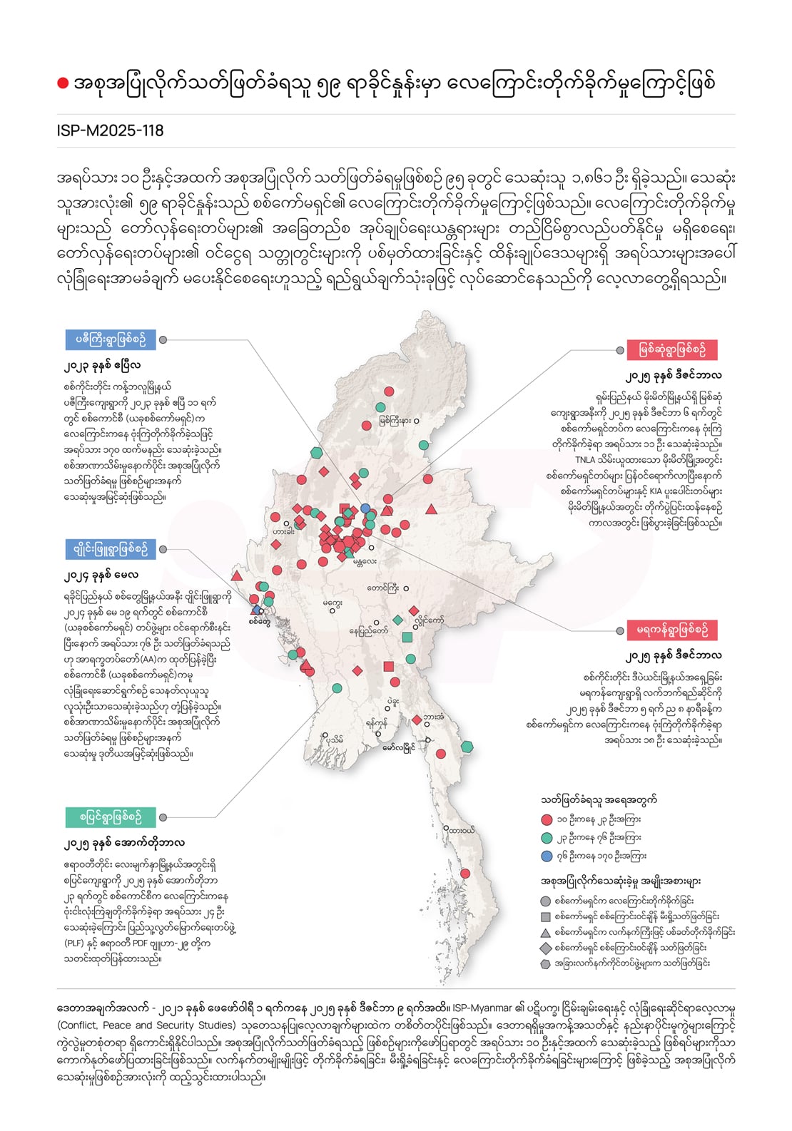 ဒီဇင်ဘာ ၅ ရက်က အရပ်သား ၁၈ ဦးသေဆုံးခဲ့သော ‘စစ်ကိုင်းတိုင်း ဒီပဲယင်း မရကန် ရွာဖြစ်စဉ်’နှင့် ဒီဇင်ဘာ ၆ ရက်က အရပ်သား ၁၁ ဦးသေဆုံးခဲ့သော ‘ရှမ်းပြည်နယ် မိုးမိတ်မြို့နယ် မြစ်ဆုံရွာဖြစ်စဉ်’များအပါအဝင် လေးနှစ်ကျော်ကာလအတွင်း နိုင်ငံတဝန်းတွင် အရပ်သား ၁၀ ဦးနှင့်အထက် အစုအပြုံလိုက် သတ်ဖြတ်ခံရမှု ၉၅ ကြိမ်ထက်မနည်း ရှိခဲ့ပြီး စုစုပေါင်း ၁,၈၆၁ ဦးထက်မနည်း သေဆုံးခဲ့သည်။