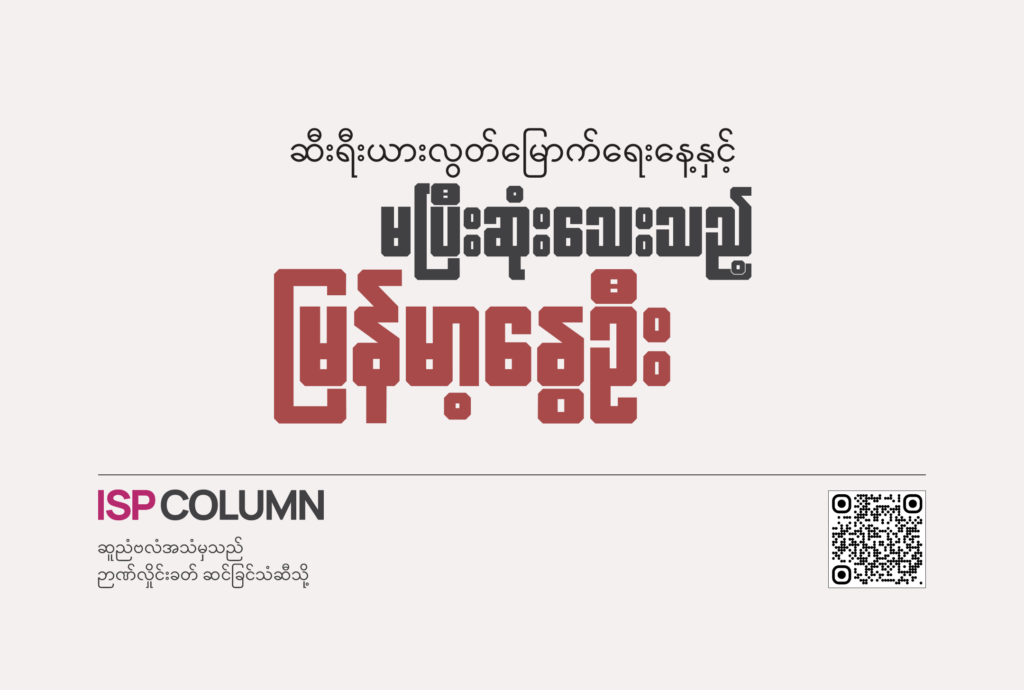 လူငယ်တွေရဲ့ အပြောချင်ဆုံးစကား၊ လူထုပရိသတ်တွေ အကြားချင်ဆုံးအသံကို ‘ISP Column’ကနေ ပို့ဆောင်ပေးနိုင်မယ်လို့ ယူဆပါတယ်။ စာမူတွေကို အယ်ဒီတာအဖွဲ့က ရွေးချယ်၊ တည်းဖြတ်မှုတွေ လုပ်ဆောင်ပါမယ်။ ဒါပေမဲ့ မူရင်းပုံမပျက်ယွင်းစေဘဲ (လိုအပ်တဲ့) အနည်းဆုံး တည်းဖြတ်မှုပဲ ဖြစ်ပါလိမ့်မယ်။ စာမူတွေအတွက်လည်း ISP-Myanmar က ဉာဏ်ပူဇော်ခချီးမြှင့်ဖို့ စီစဉ်ထားပါတယ်။
