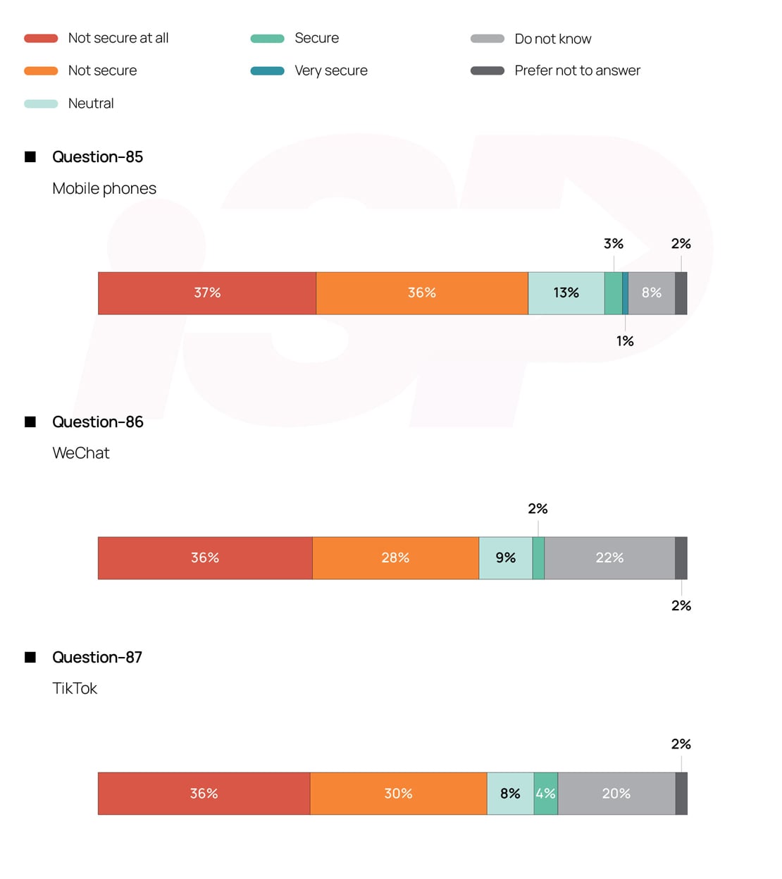 For survey questions No. 85 to 87, respondents were asked about their perceived level of security and privacy associated with each item from the list of communication and information technology devices made by Chinese companies that they presently use.